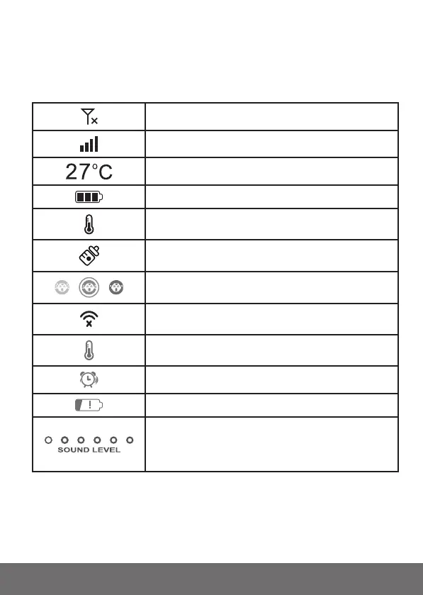 16. Įkrovimo būsenos / gaunamų garsų garsumo indikatorius
