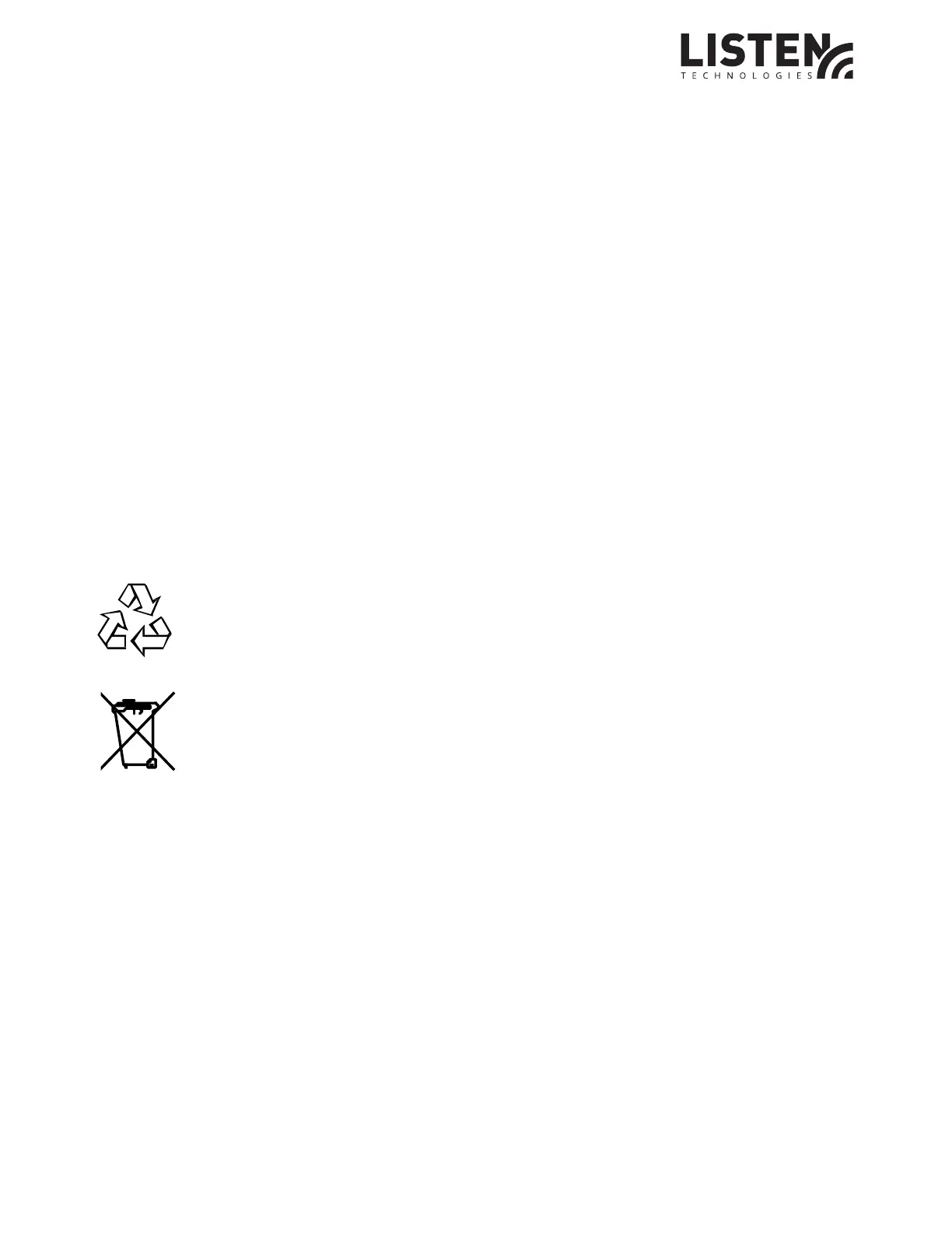 Please do NOT dispose of your Listen Technologies equipment in the household trash.