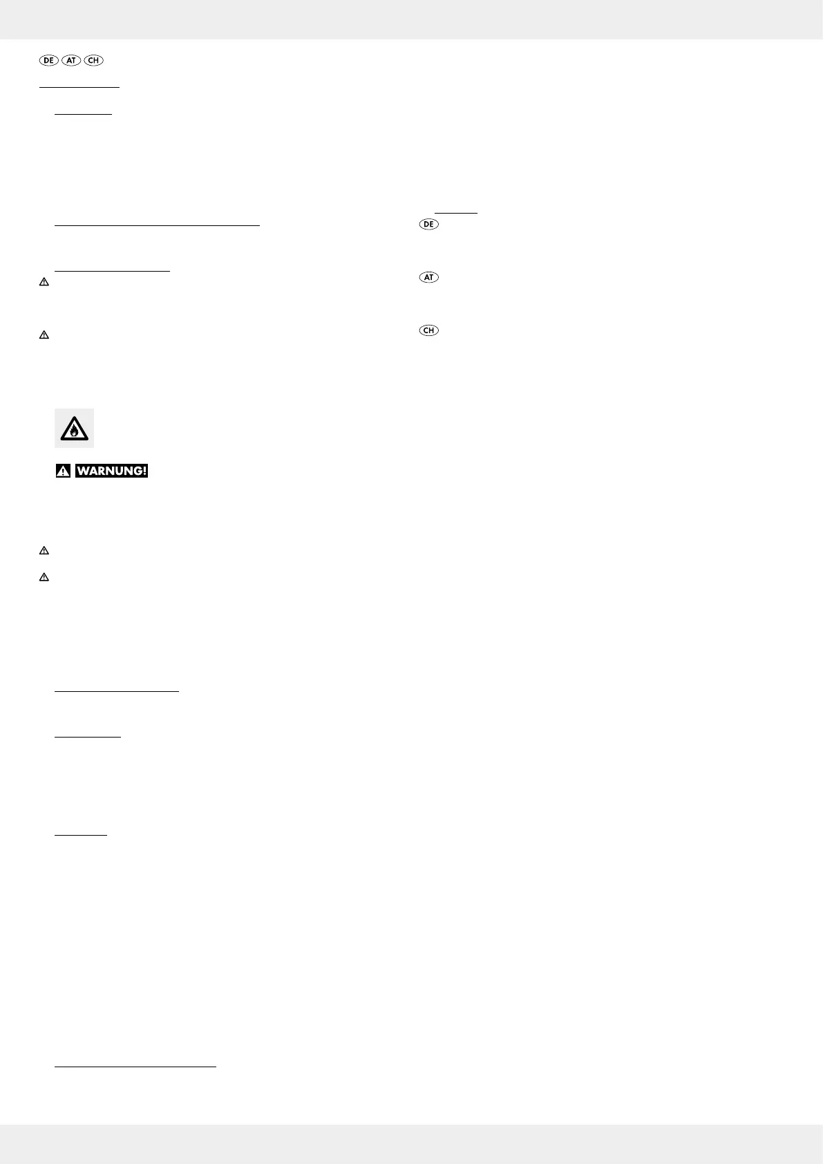 ¾ VORSICHT! BRANDGEFAHR! Stellen Sie das Produkt nicht in der
