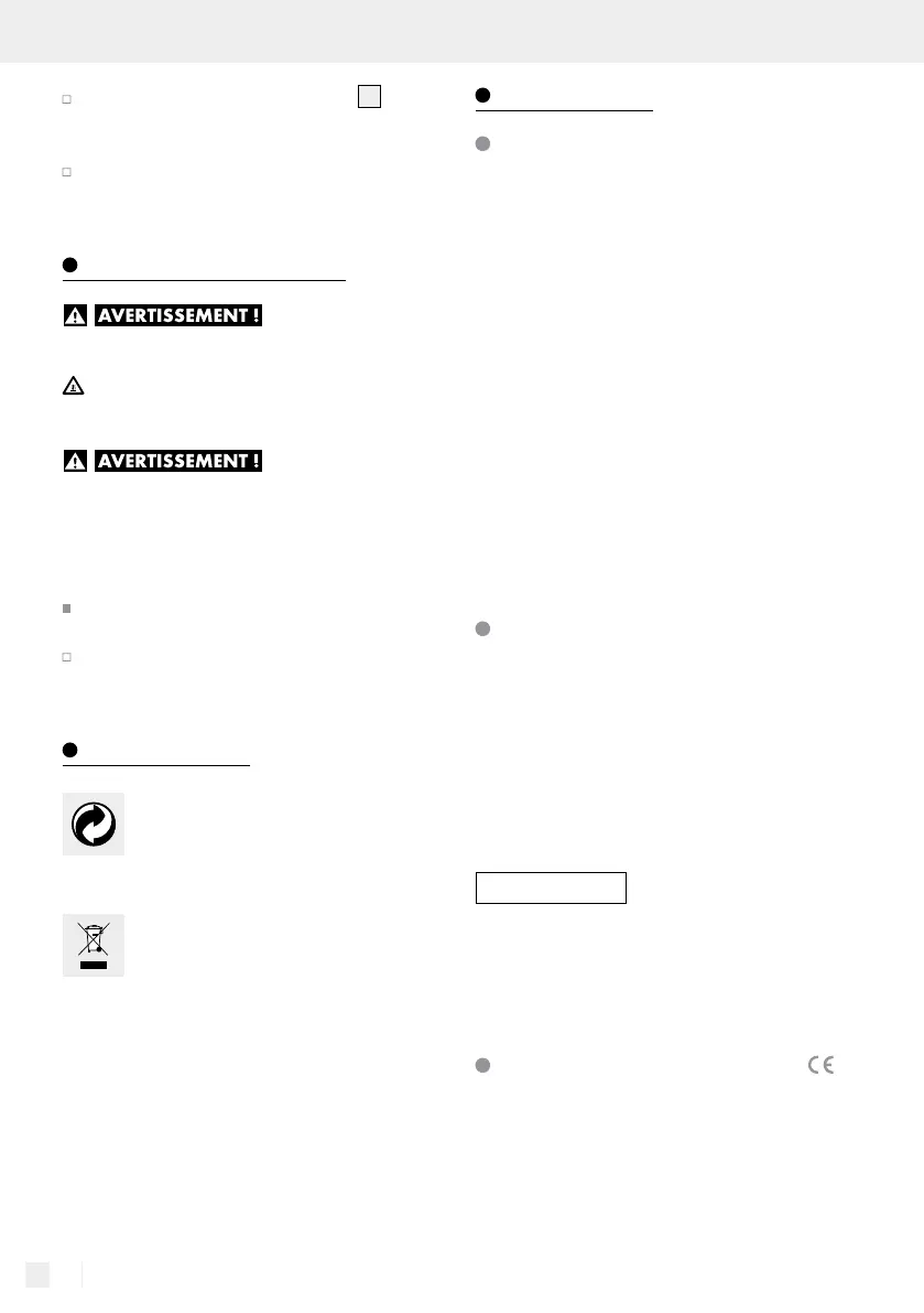 Cela vaut pour l‘appareil ainsi que pour tous les