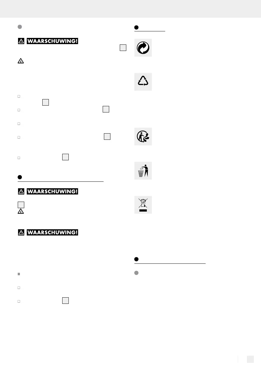 Veiligheid / Ingebruikname Ingebruikname / Onderhoud en reiniging / Afvoer / Garantie en service