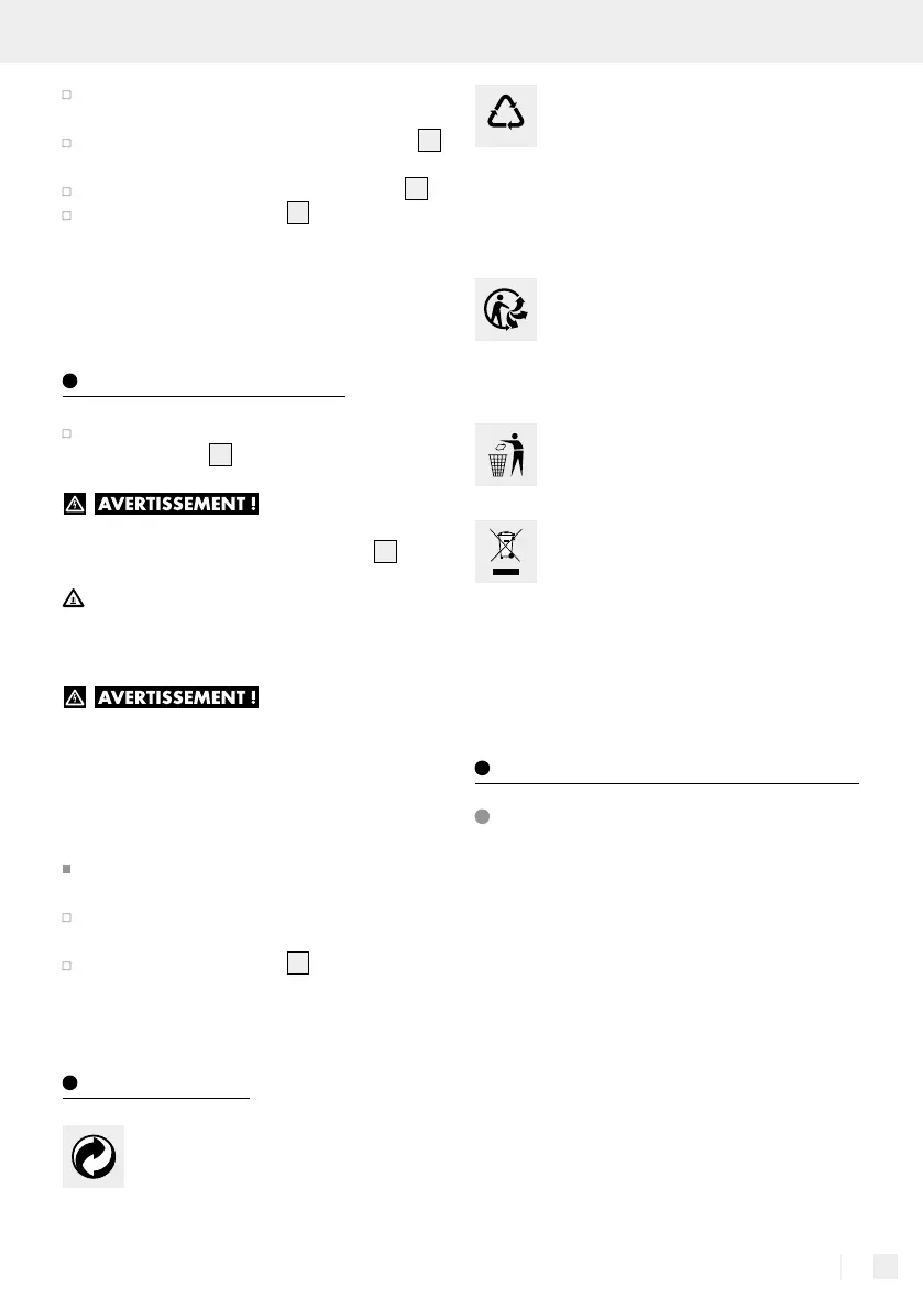 ... / Entretien et nettoyage / Mise au rebut / Garantie et service après-venteSécurité / Mise en service / Remplacement de l‘ampoule