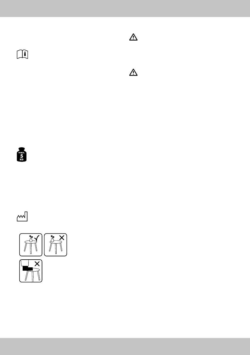 • Na stôl sa nikdy nestavajte ani naň nesadajte.