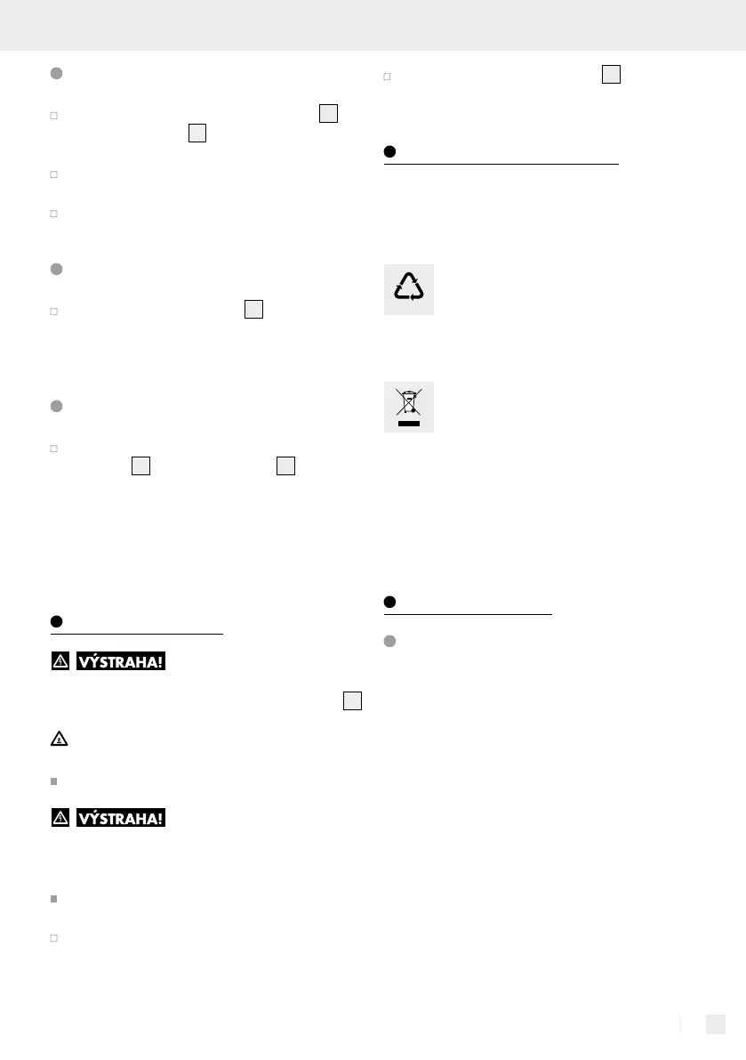 Bezpečnost/Uvedení do provozu Uvedení do .../Údržba a čištění/Odstranění do odpadu/Záruka a servis