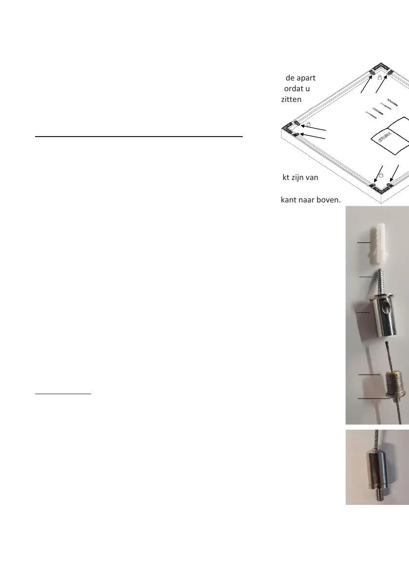 5. Haal alle onderdelen van de plafondmontageset uit de plastic zak (4x kabel, 4x