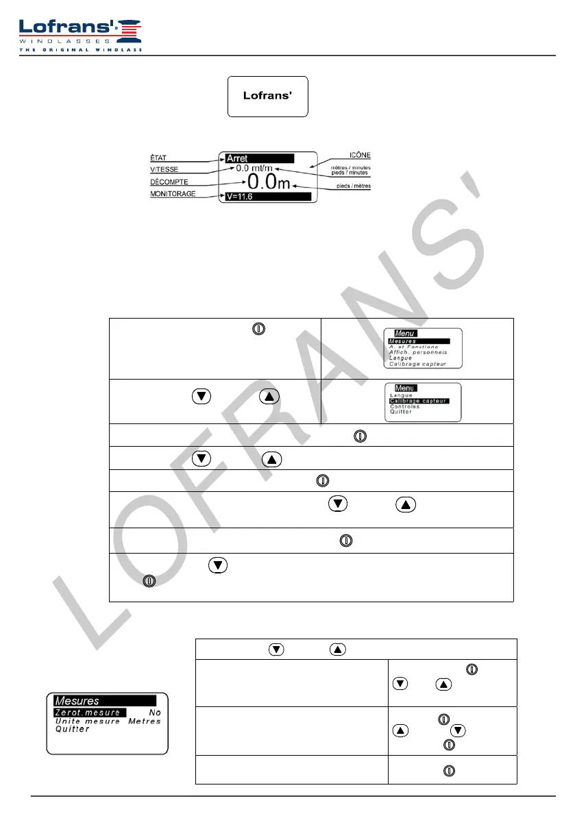 DÉCOMPTE: indique la longueur de la chaîne descendue (mètres ou pieds).