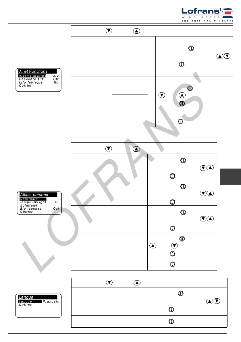 Utiliser les touches (DOWN) ou (UP) pour se déplacer parmi les paramètres.