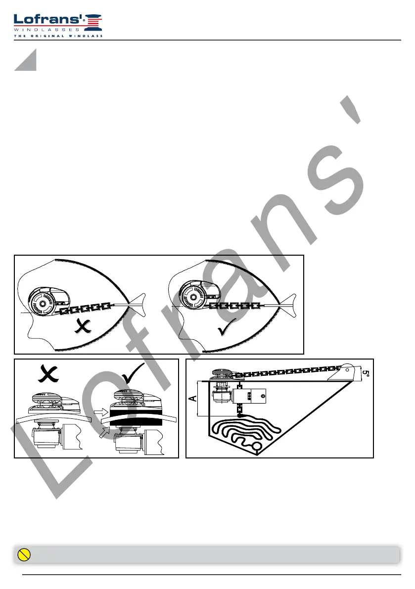 In order to operate the anchor windlass correctly, it must be installed to meet the following conditions: