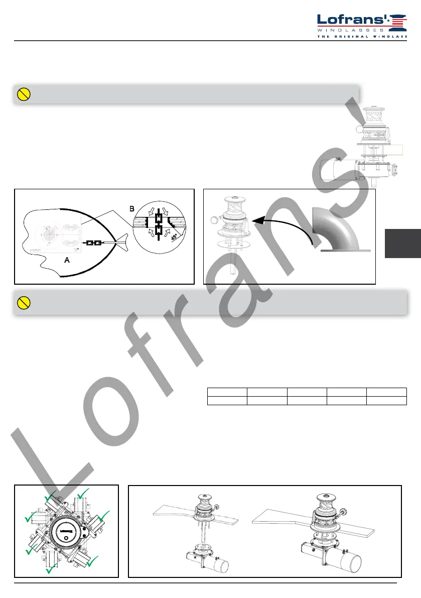 For aluminium boats, it is essential that the anchor windlass be insulated from the deck through a non-conductive gasket (not supplied).