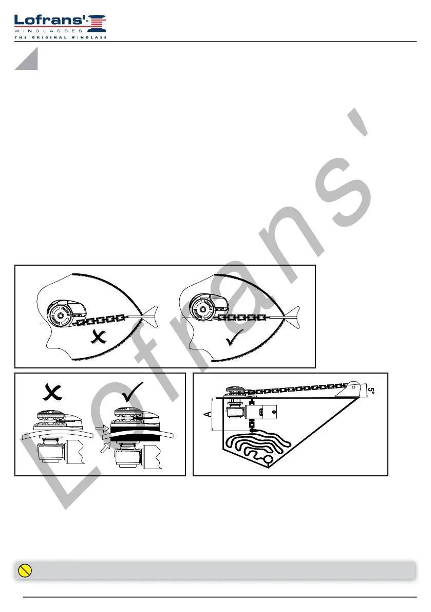 In order to operate the anchor windlass correctly, it must be installed to meet the following conditions: