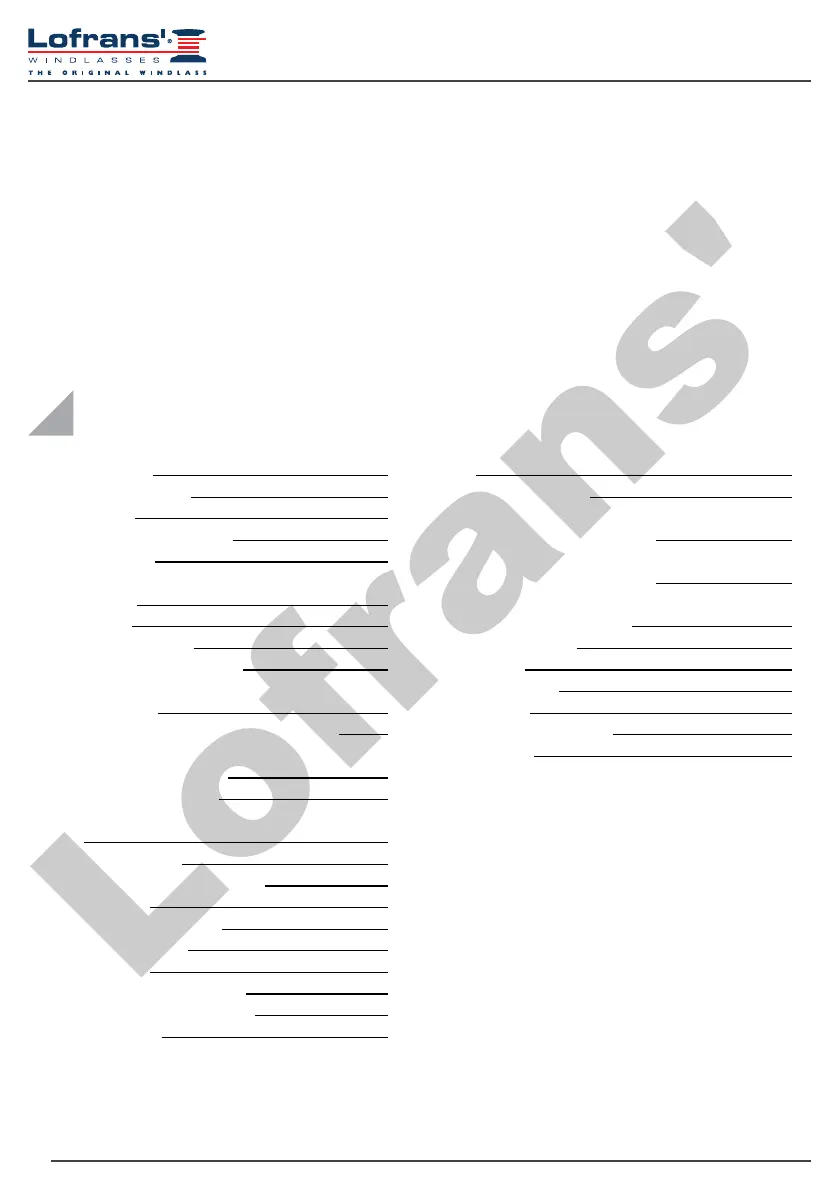 Grazie per aver scelto un prodotto Lofrans. Lofrans è una azienda leader nella produzione e distribuzione mondiale di impianti nautici