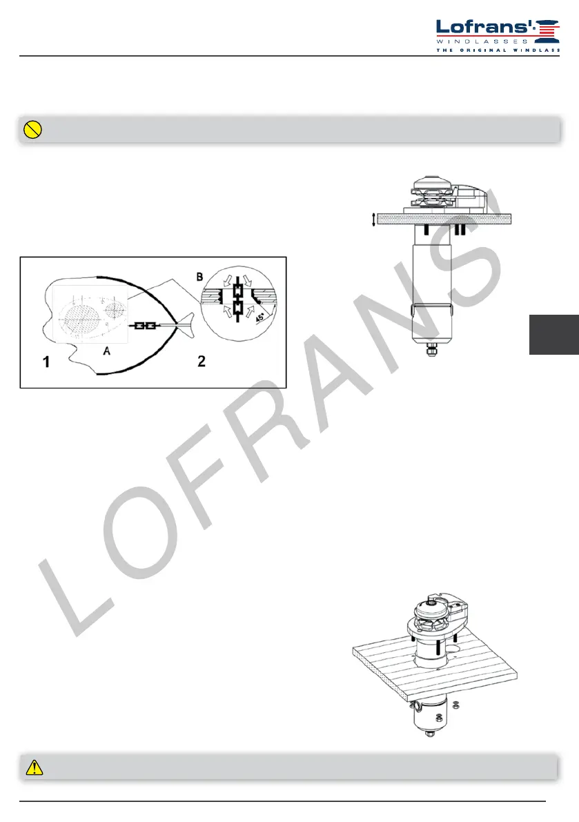 base of the anchor windlass to the deck since this will make difcult the removal in case of maintenance or intervention.