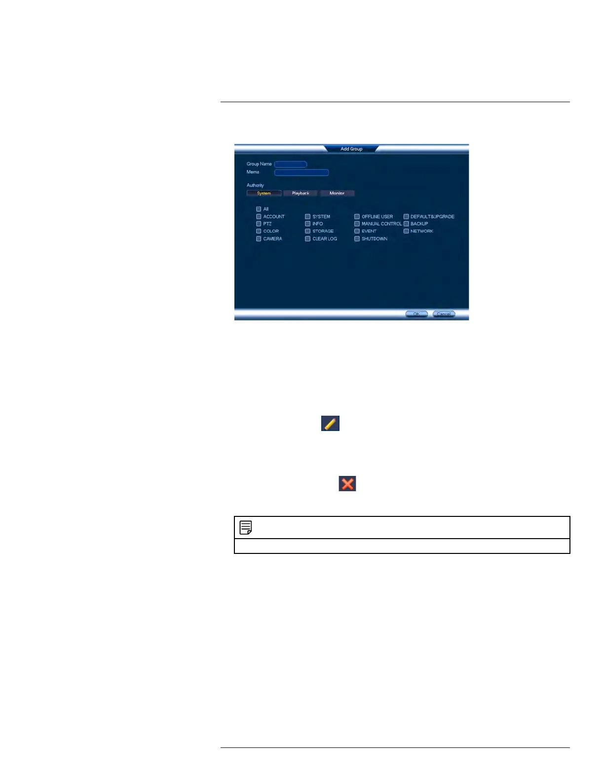 • Authority: Check the permissions that the group will have. User accounts assigned