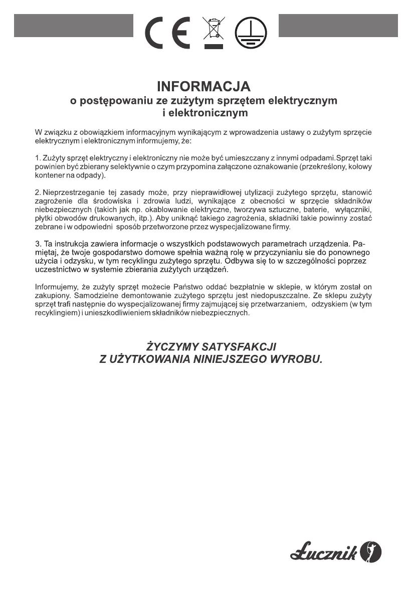 Bekijk gratis de handleiding van Łucznik WK-2501, stel vragen en lees de antwoorden op veelvoorkomende problemen, of gebruik onze assistent om sneller informatie in de handleiding te vinden of uitleg te krijgen over specifieke functies.