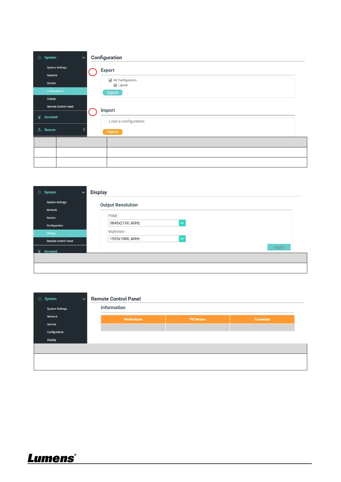 Remote control panel. Display the connection information of LC-RC01 remote control panel (optional).