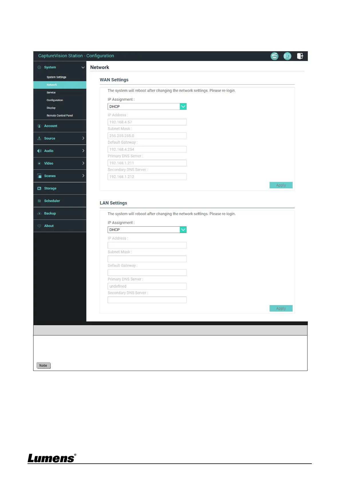 The factory setting is DHCP. If you want to use a static IP address, please configure the