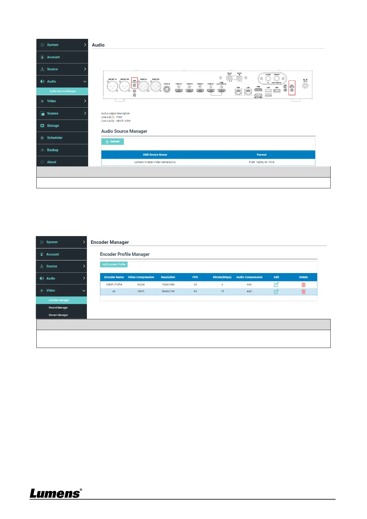 Click [Add Encoder Profile] to configure the compression format/resolution/bit rate/audio sampling