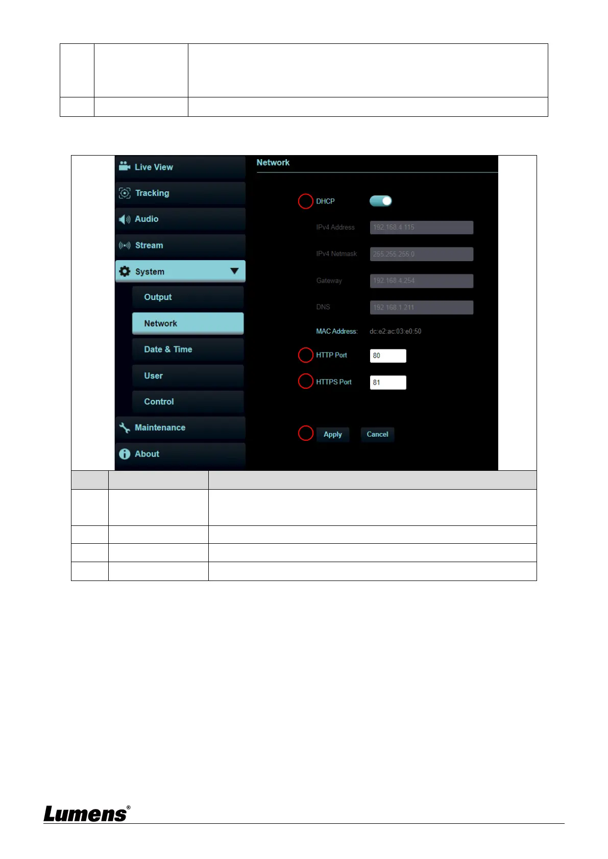 3 HTTPS Port Set HTTPS port. The default Port value is 81