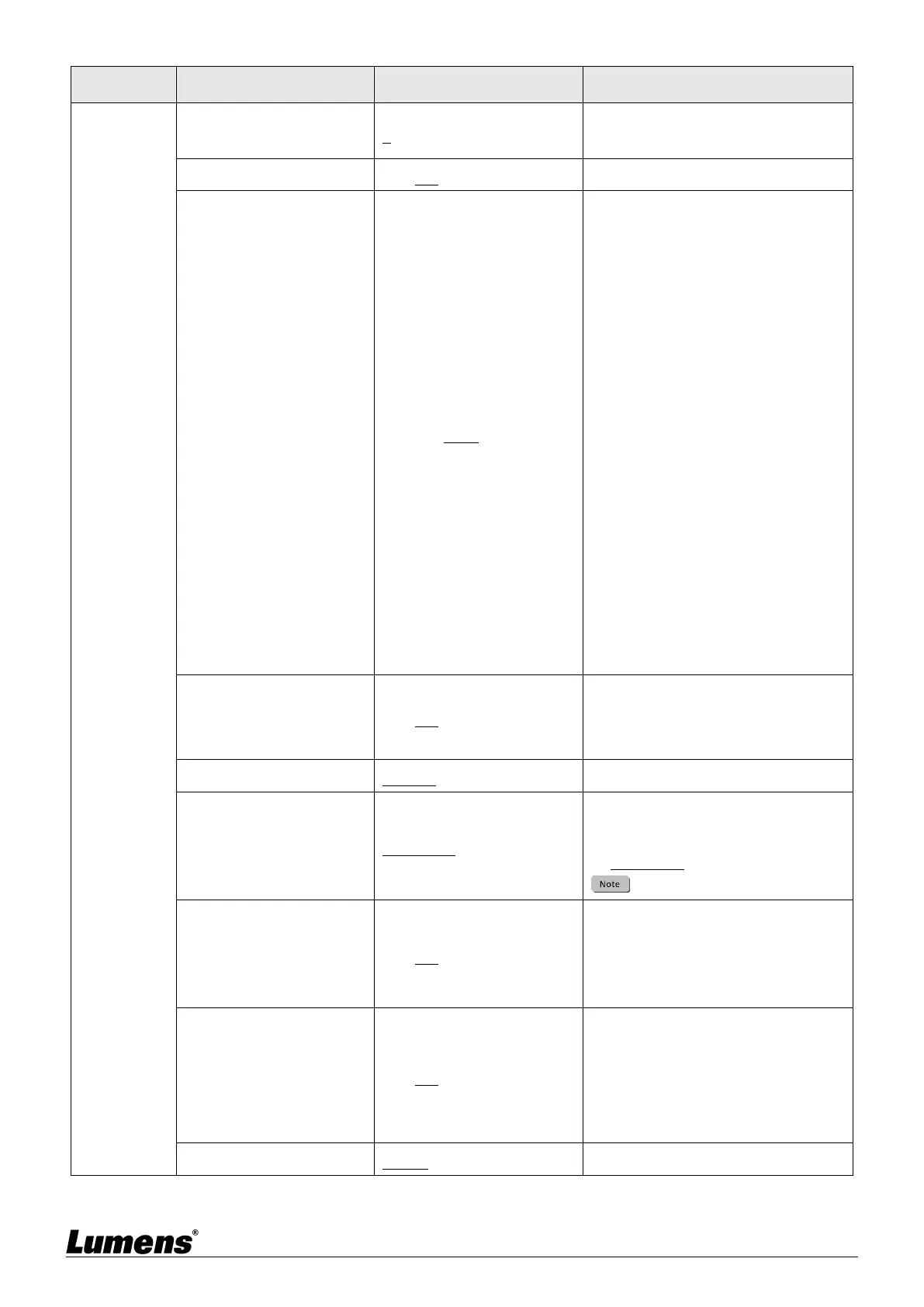 Tally Lamp On/ Off Enables the camera's tally lamp.