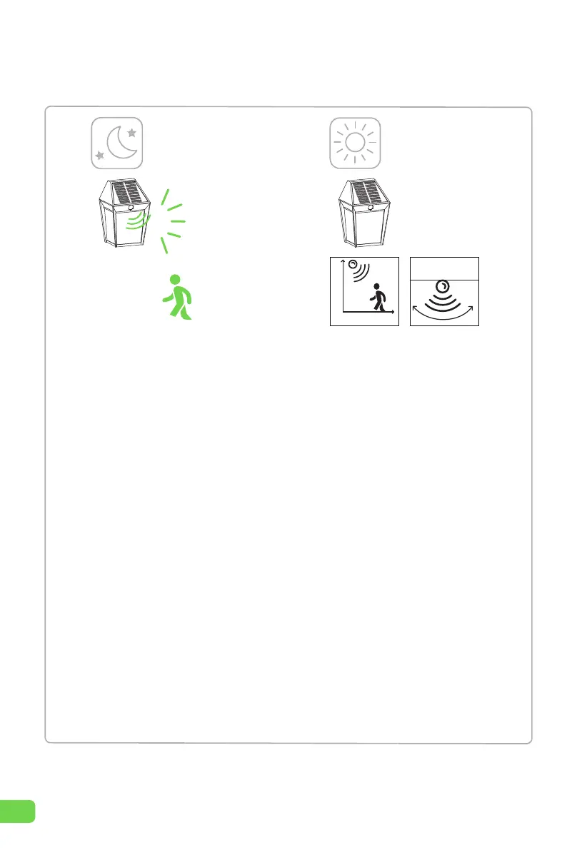 lampan. Ljuset förblir tänt i 30 sekunder. I gryningen avaktiveras rörelsesensorn.