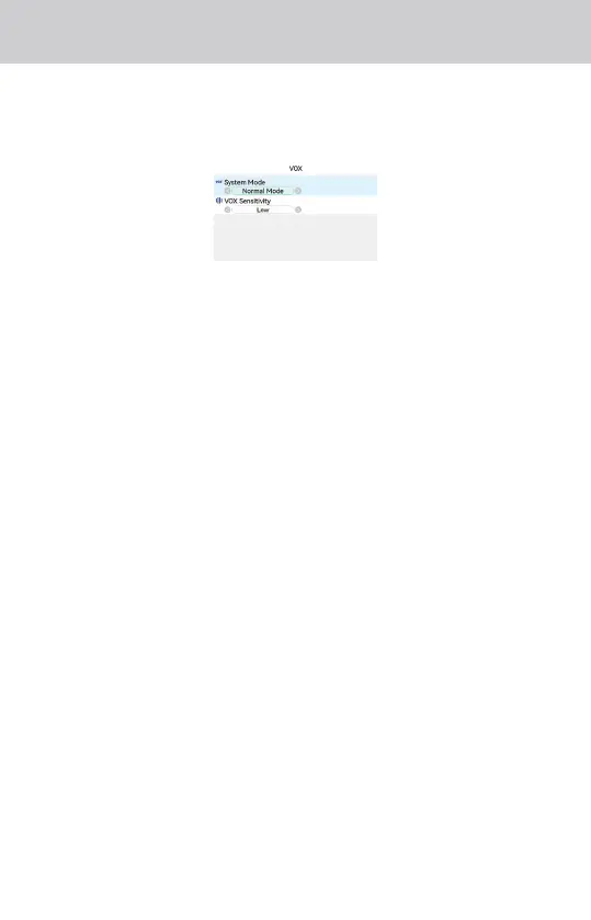 • VOX-Empfindlichkeit: Stellen Sie die Empfindlichkeit auf Niedrig/Mittel/