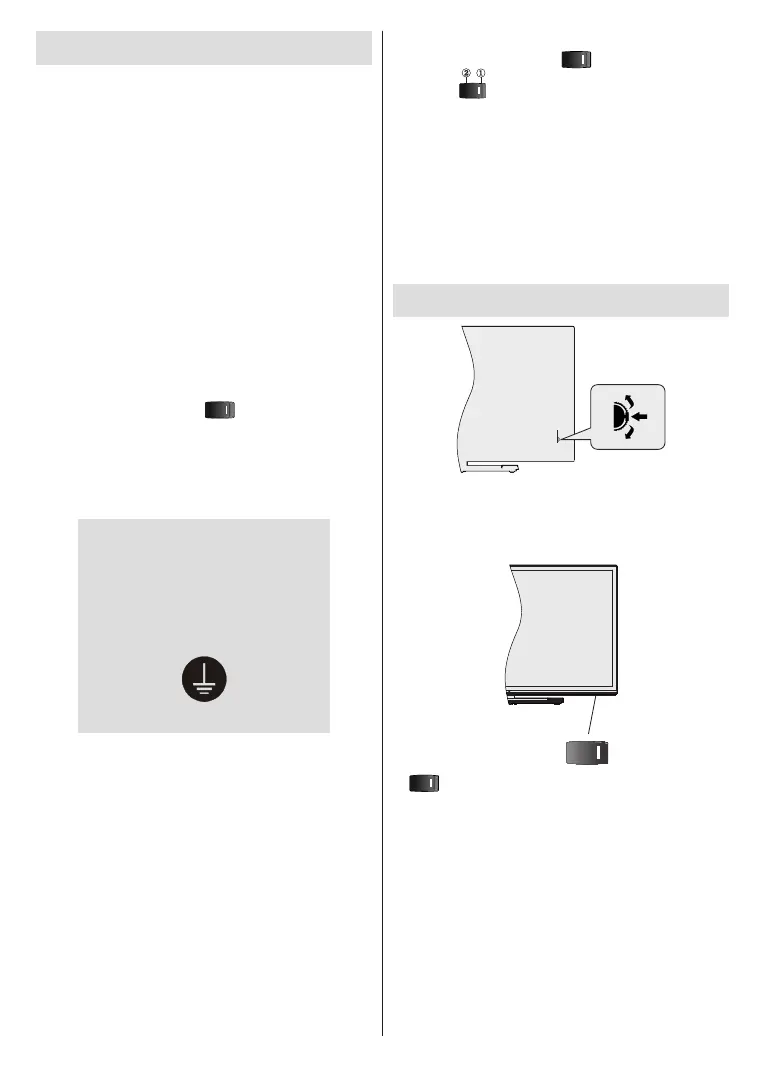 Turn on the main switch “ ” located on the TV -