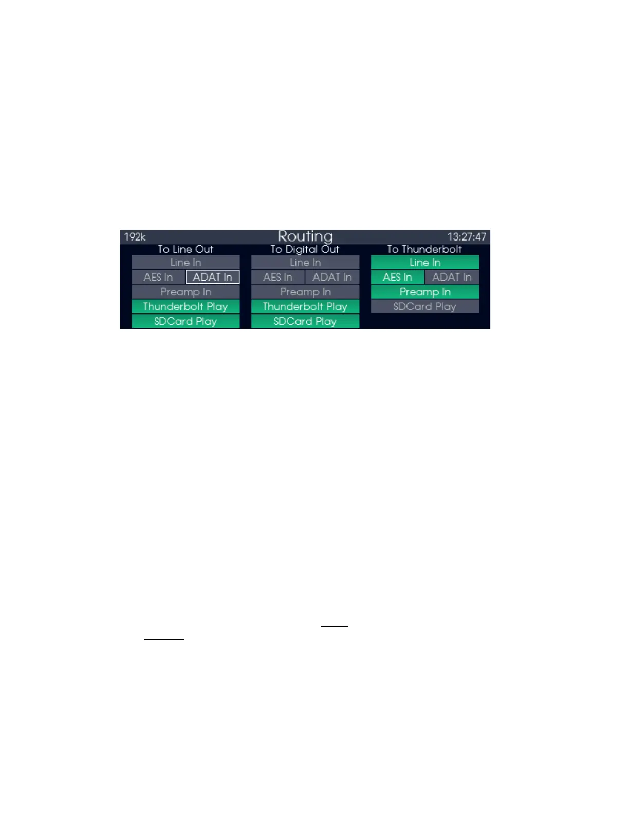 “ADAT In”; “Preamp In” (depending on the configuration) or “SD Card Play”. Sending multiple sources per