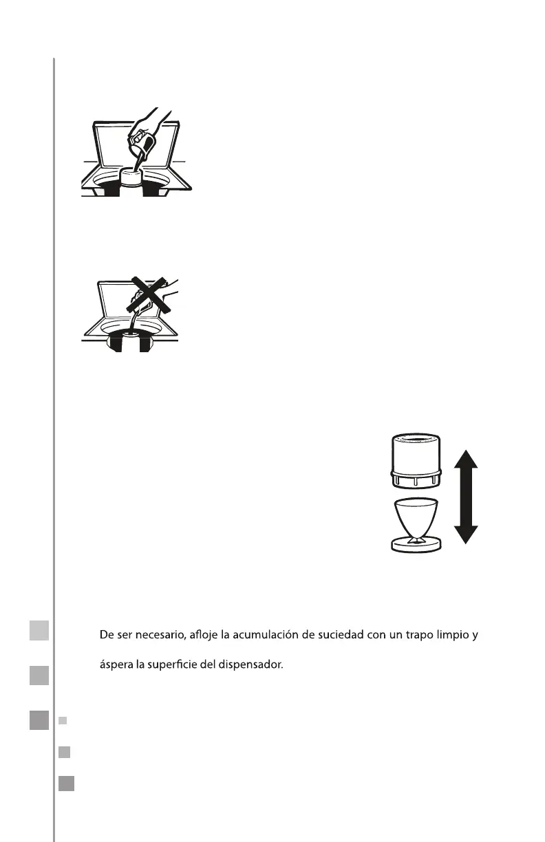 3 Para limpiar el dispensador, ponga en remojo la taza del