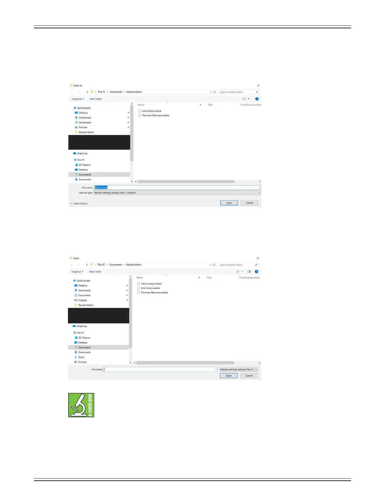 Once the location/folder has been determined (via Mackie Matrix Folder Location), the Mackie Matrix system may be saved