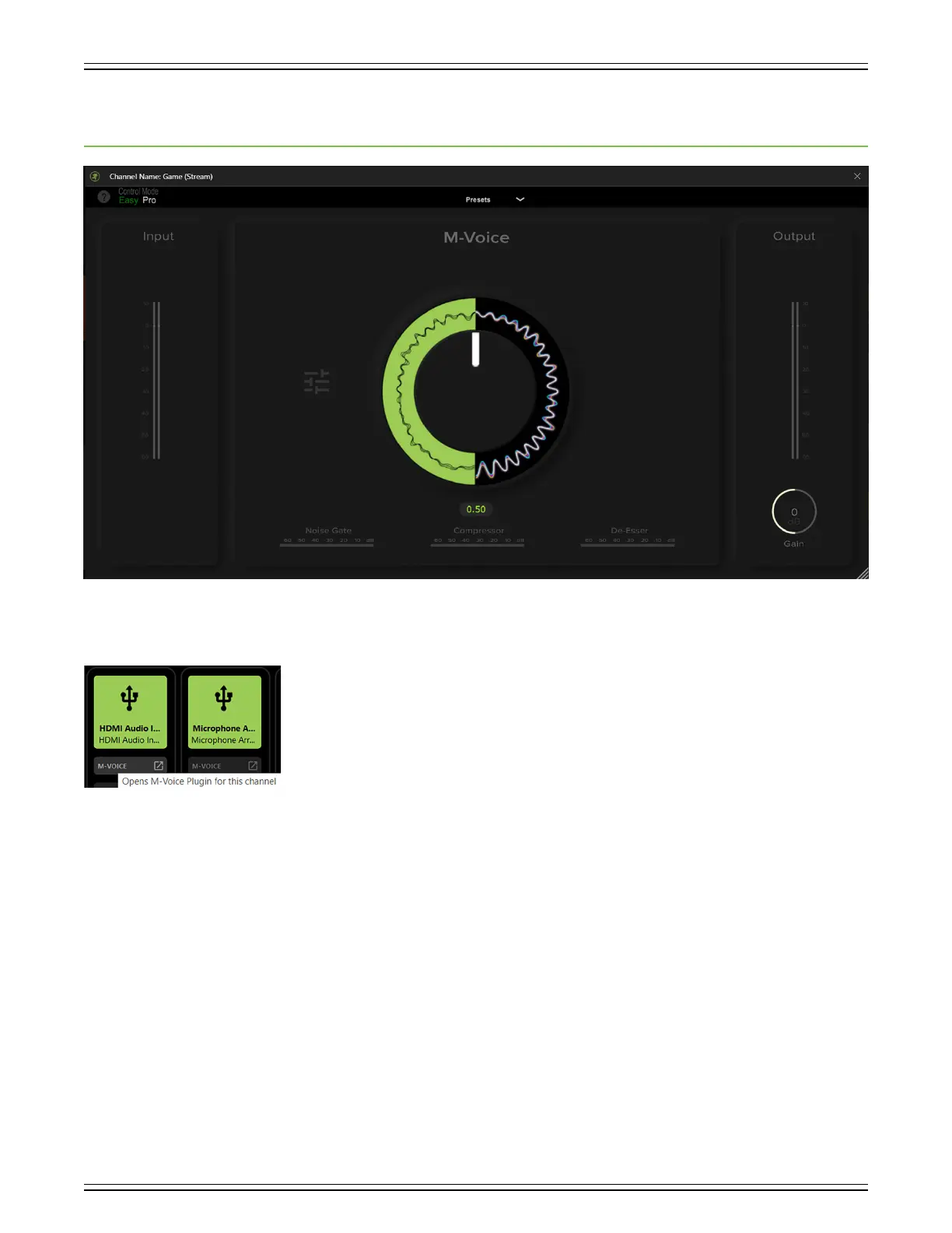 preference. These include EQ, Noise Gate, Compressor, and De-Esser! Not only that, but you can