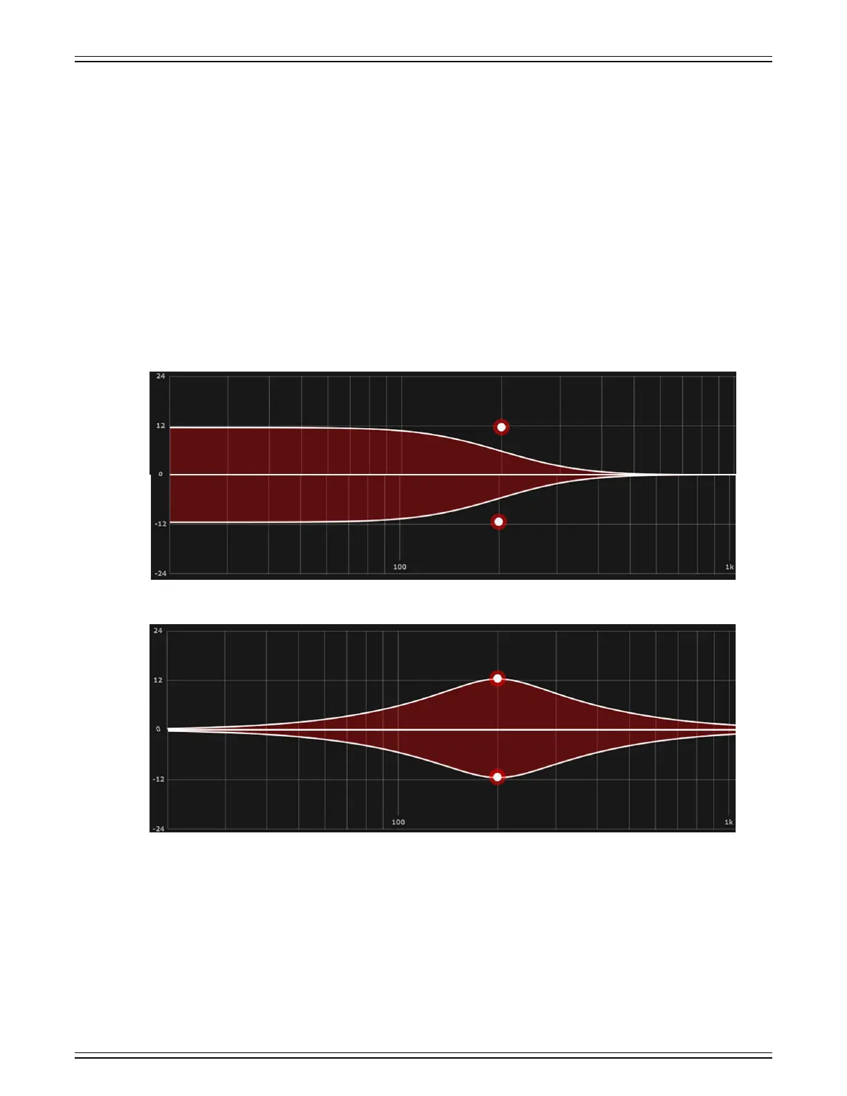 EQ band 1 provides up to 24 dB of boost or cut from 20 Hz to 200 Hz. The screenshots displayed below contain EQ band 1