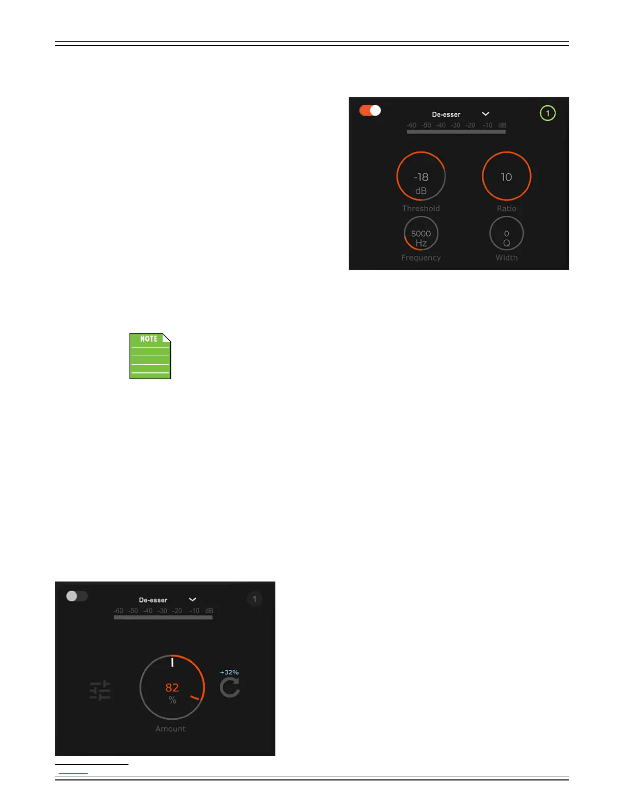De-Esser On/O — Tap the de-esser button to turn the de-esser