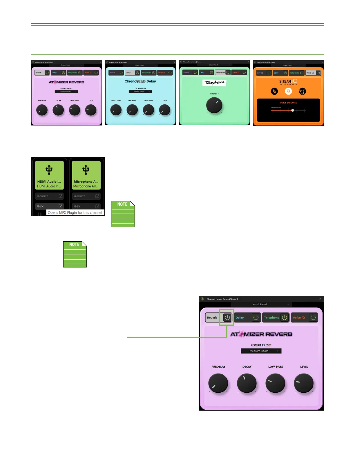 Reverb on/o switch. Click on the FX switch(es) to turn them