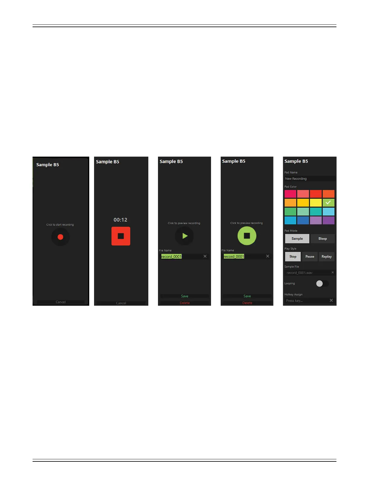 and sample pad selected. For this example, we will use Bank B, Sample 5. As such, B5 is displayed in the upper-lef
