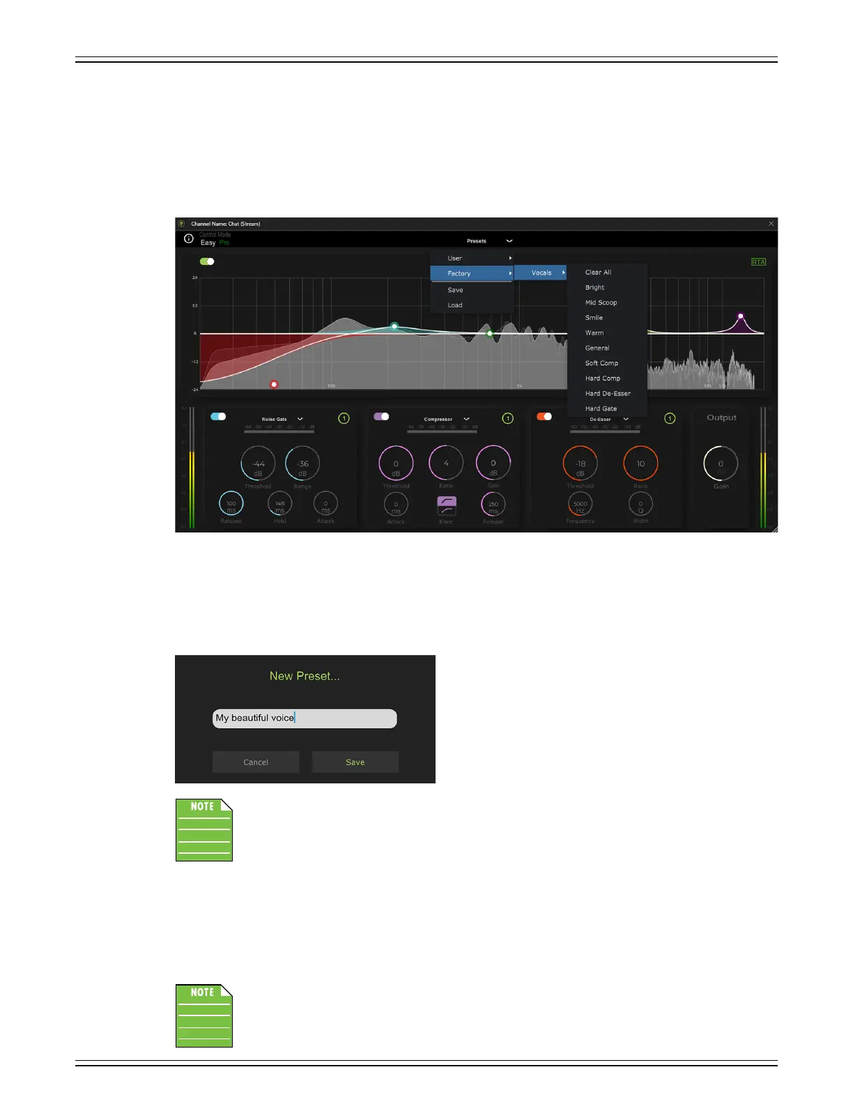 [Default: This PC > Documents > M-Voice > ||Dynamics||]. Double-clicking on one of the presets recalls its parameters.