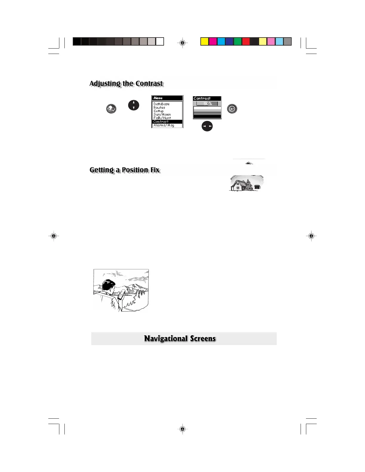 The SporTrak has seven navigation screens: Map screen, Compass screen,