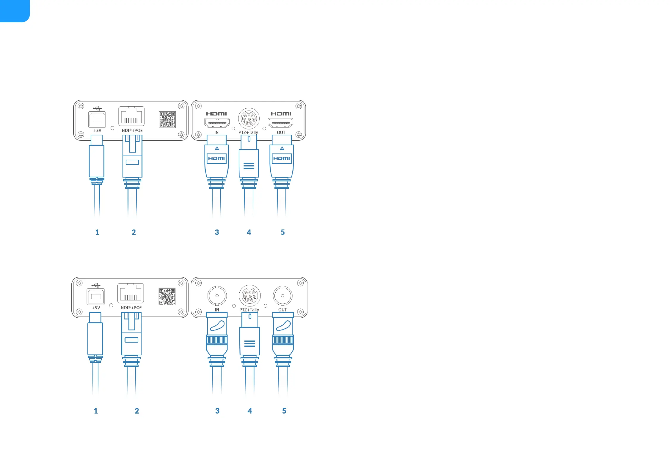 Interfaces and cables varies according to signal supported by Pro Convert. Here takes Pro Convert HDMI 4K Plus as an example to describe the cabling.
