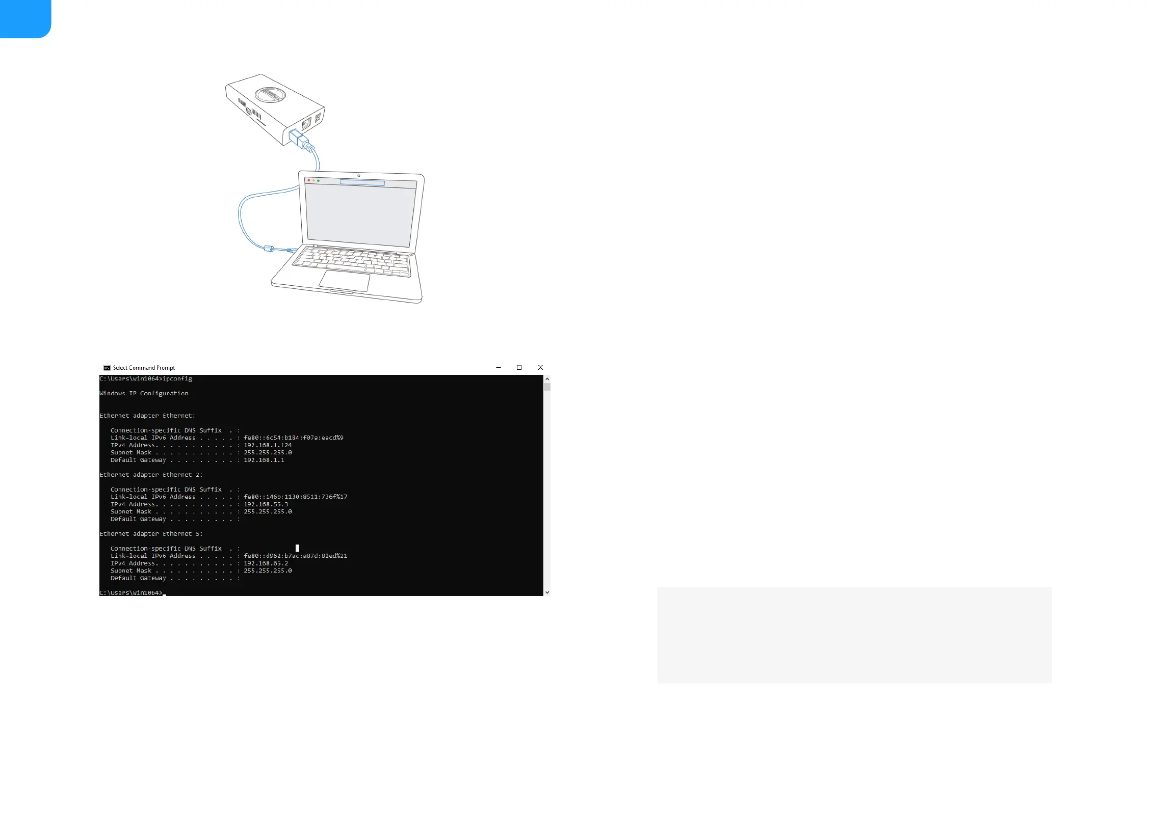 2. Type in ipconfig, and find an IPv4 address of the form