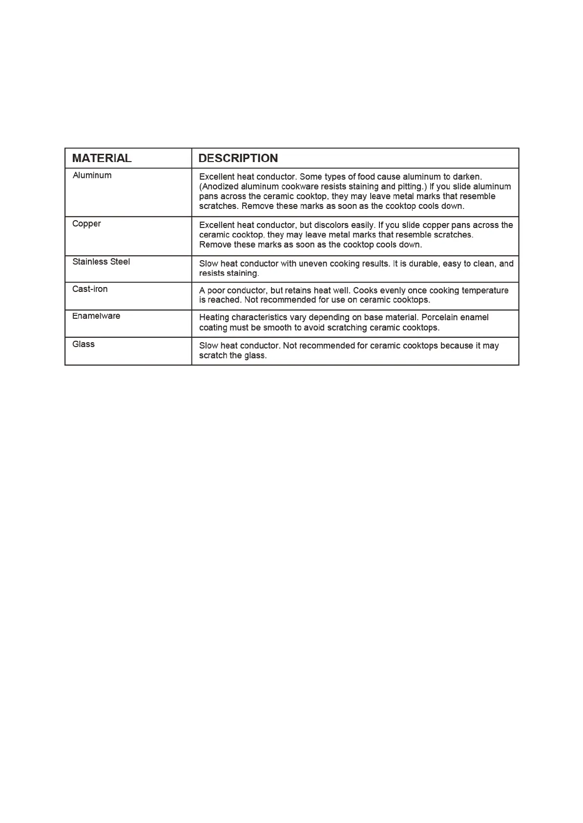 • Do not let plastic, sugar, or foods with high sugar content melt onto the hot cooktop. Should this