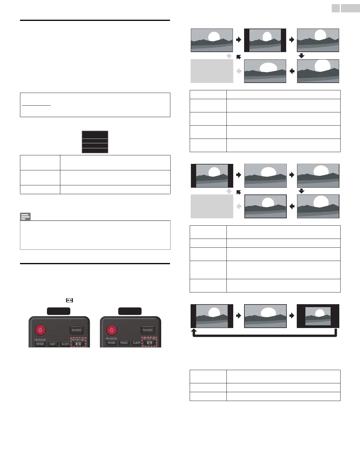 Press PICTURE SIZE repeatedly to switch the TV aspect ratio.