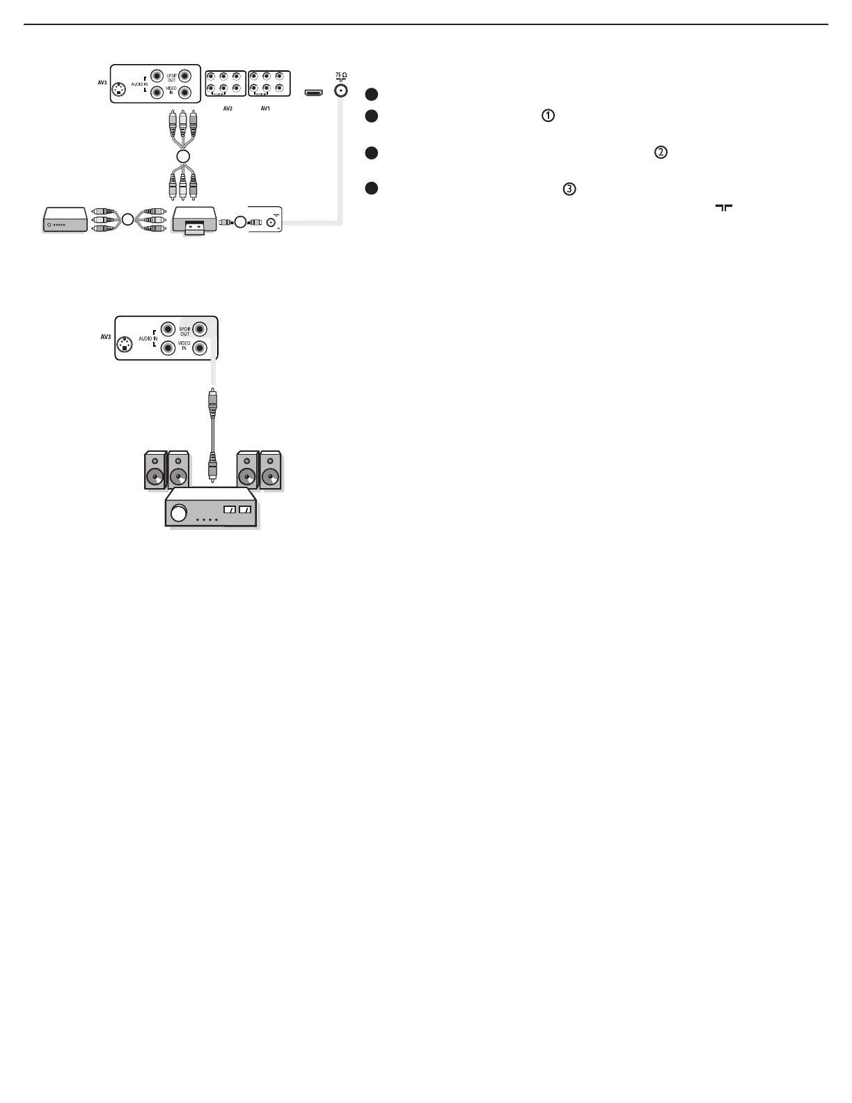 Connect the AV cables to the satellite receiver’s or cable box’s