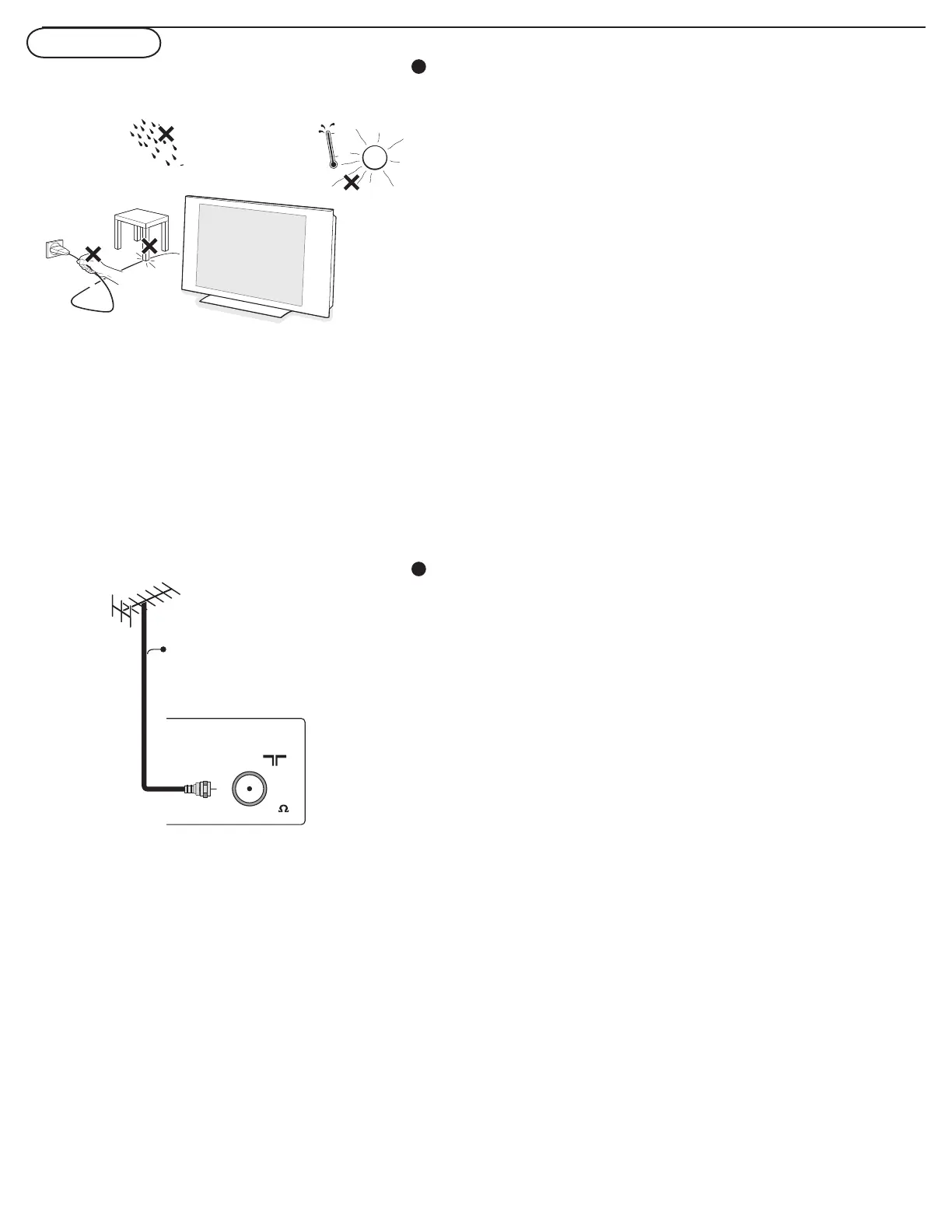 Note: Use the illustrations on the left for cable or Antenna