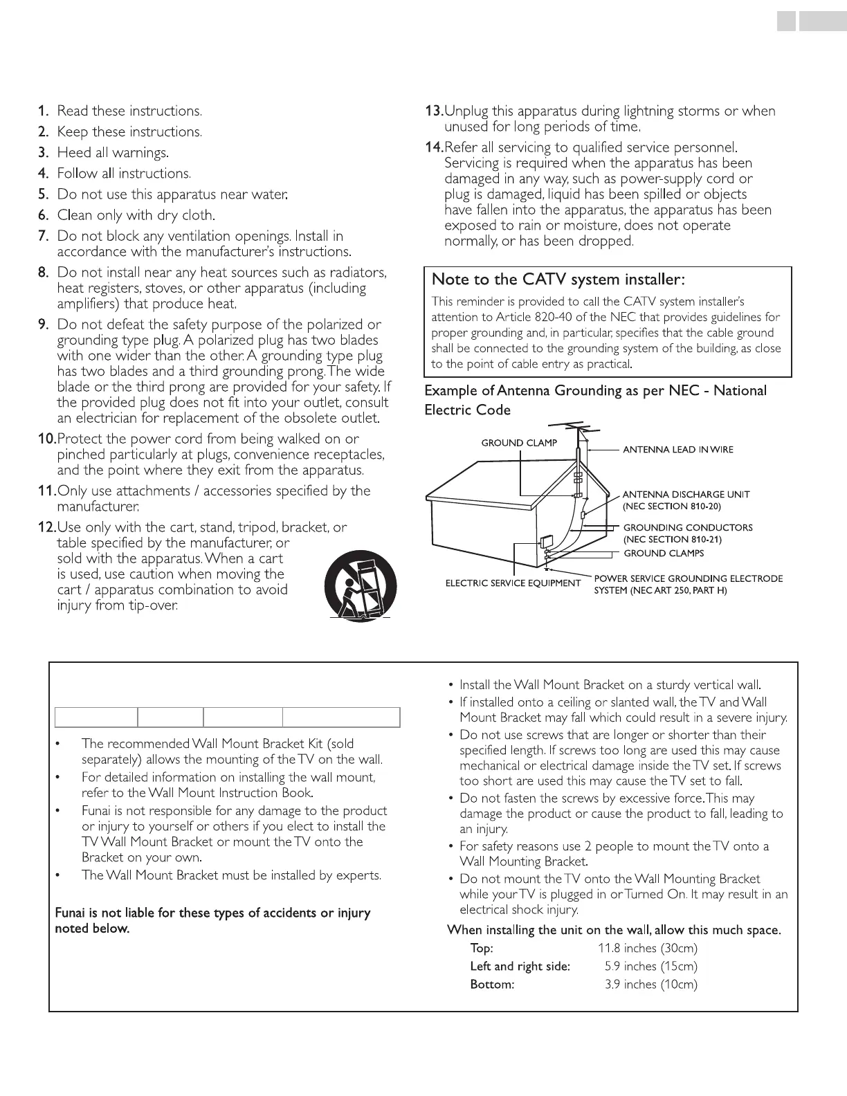 • If installed onto a ceiling or slanted wall, the TV and Wall