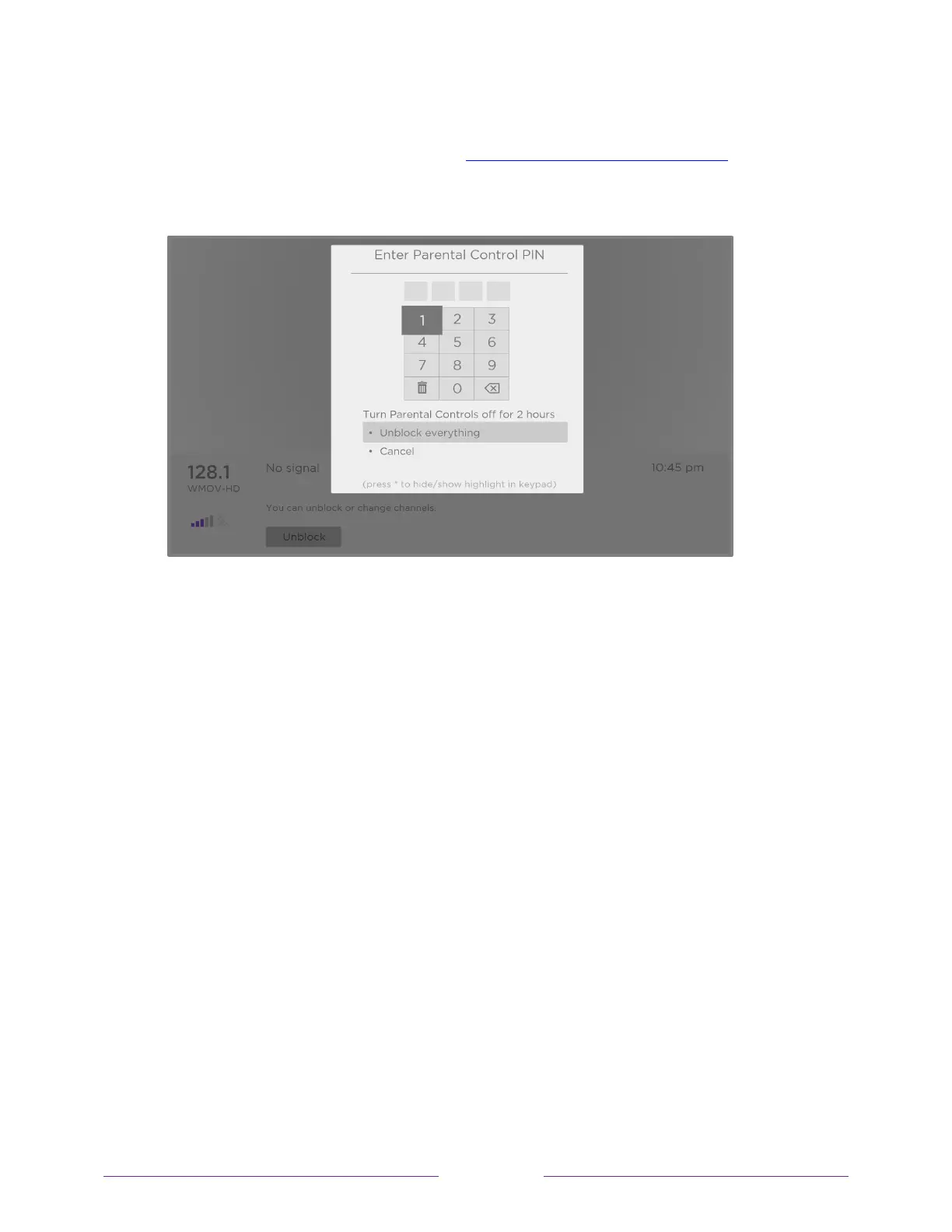 1. Press OK to select Unblock. The Parental Control PIN pad appears.