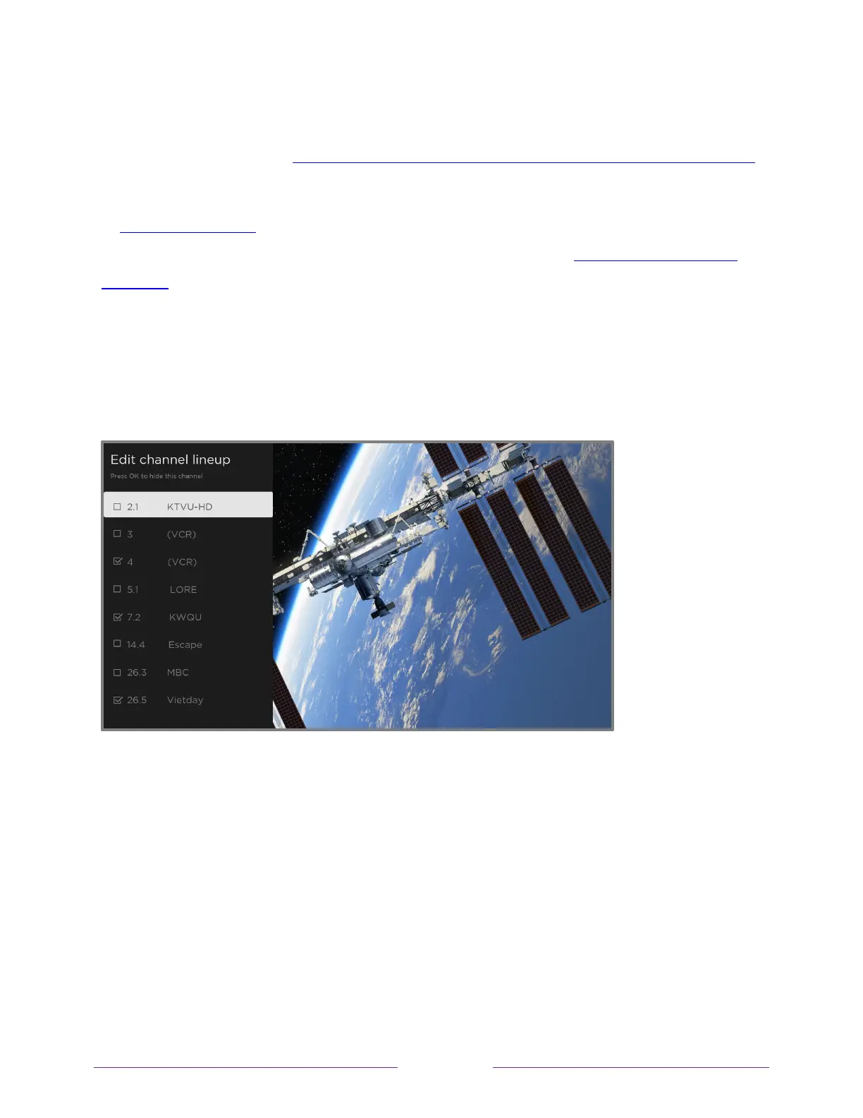 If applicable, instead see Edit channel lineup in U.S. non-connected mode and Canada.