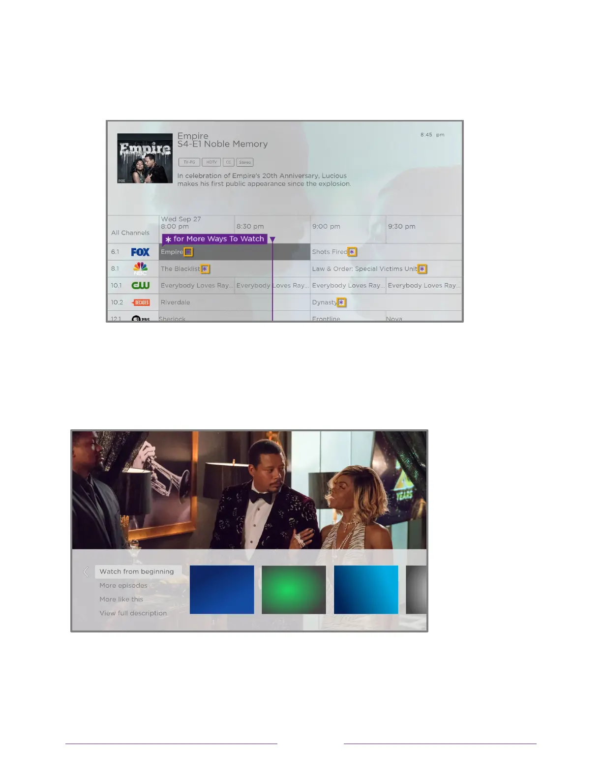 • In the Live TV Channel Guide, all programs that meet the criteria for More Ways