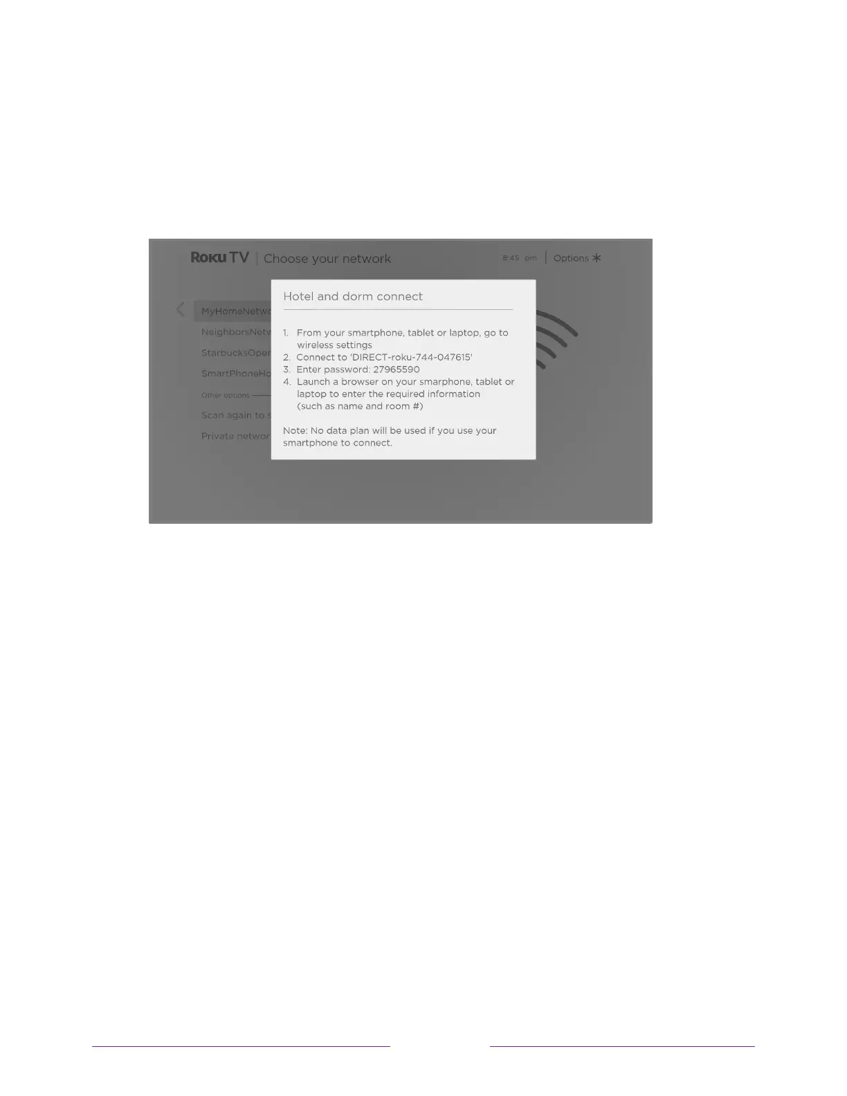 then press OK. The TV prompts you to use your smartphone, tablet, or laptop to