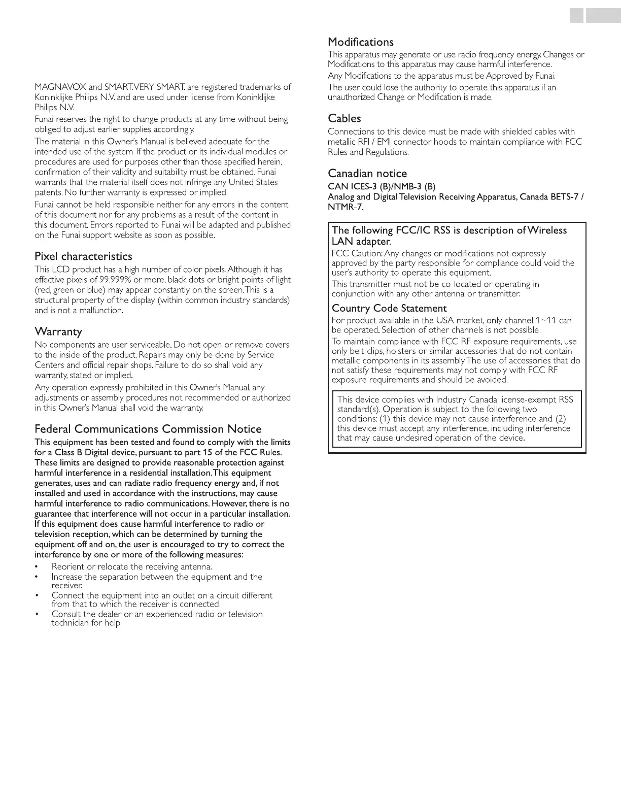 Any Modifications to the apparatus must be Approved by Funai.
