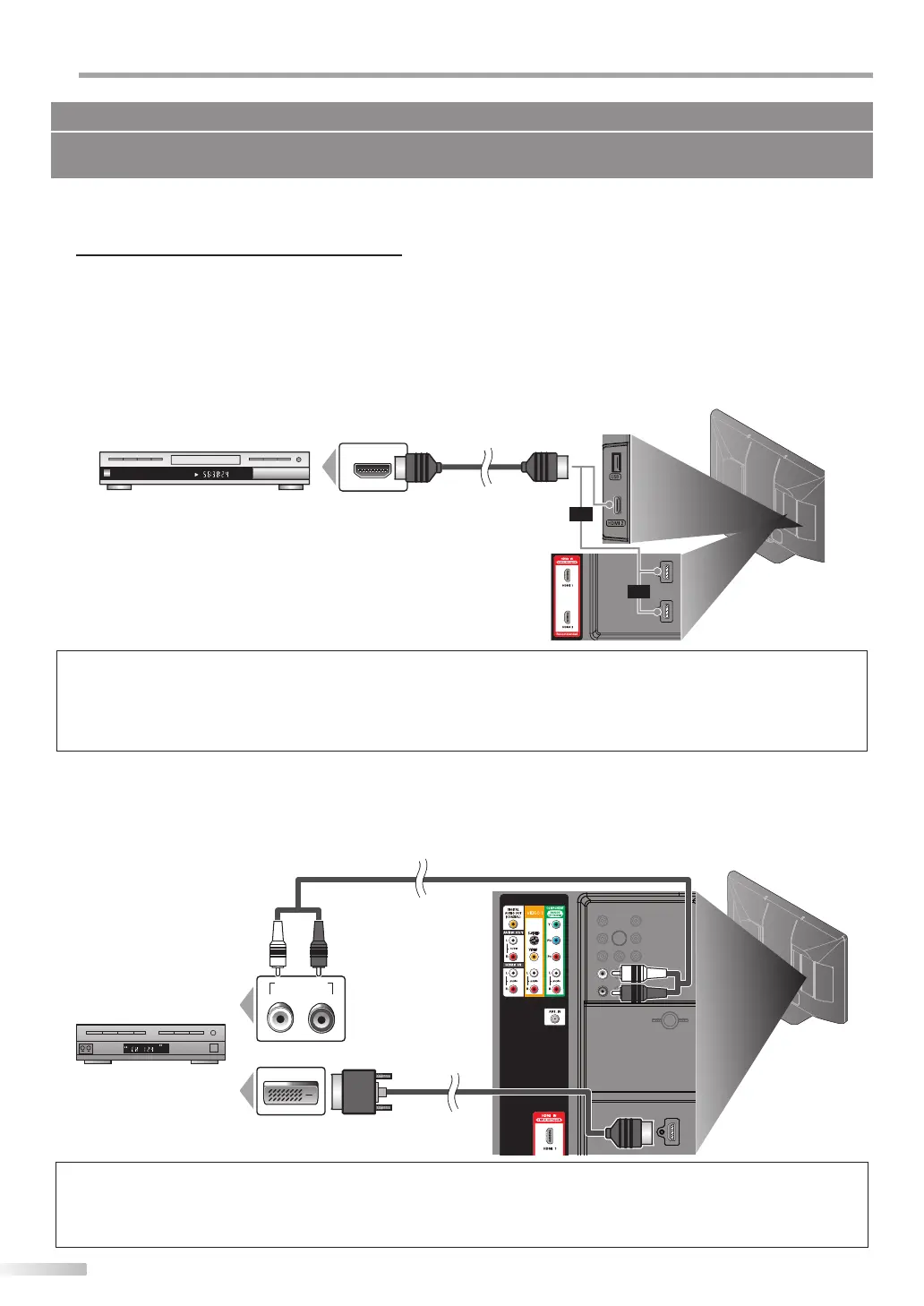 • HDMI-DVI connection requires separate RCA audio connection as well.