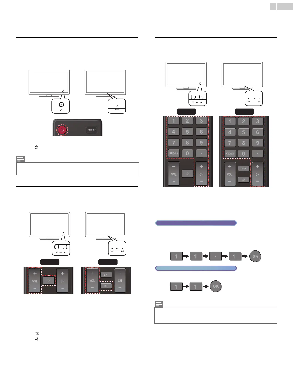 * On the 46” & 50” TV’s All CONTROL Keys are located on the Rear